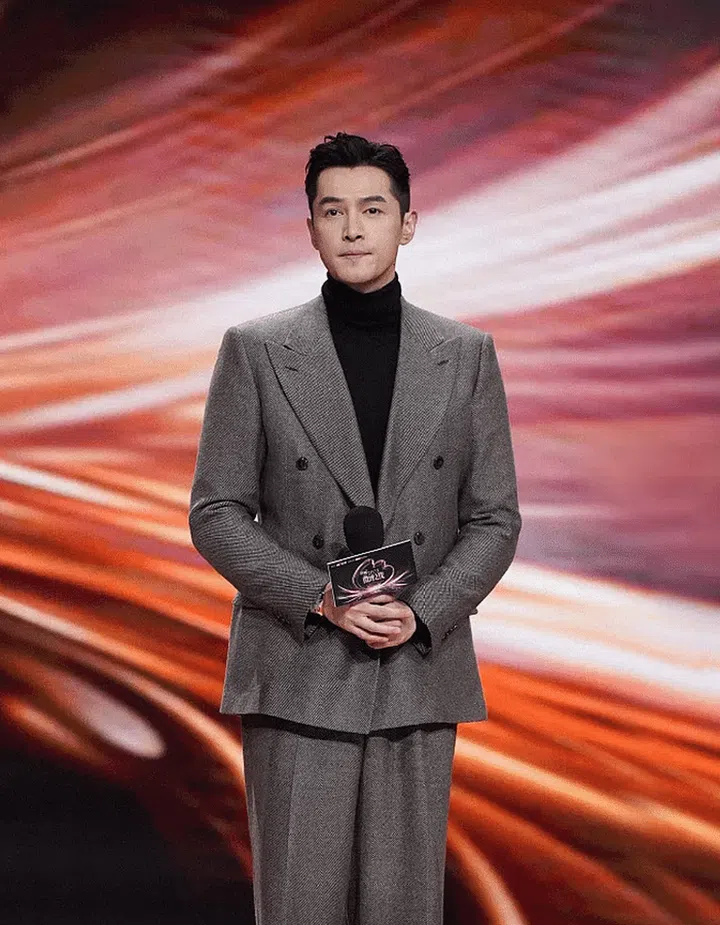 Hu Ge, the global face of Giorgio Armani, looked sharp in a Giorgio Armani suit with a peak lapel.