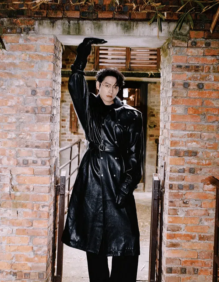 Wei Daxun looked stylish and sophisticated in a Saint Laurent leather coat from the 2023 Autumn/Winter collection, paired with gold wire-frame glasses.