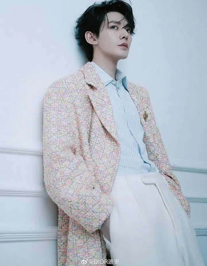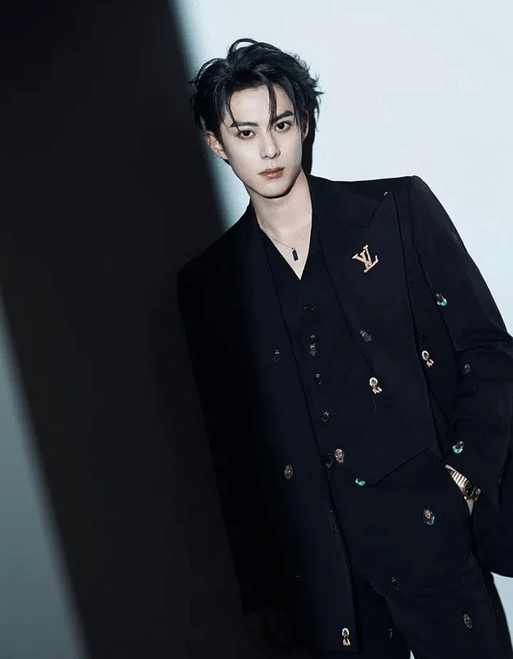 Wang He Di was in Louis Vuitton's 2024 Spring/Summer men's collection, donning an embroidered double-breasted jacket.