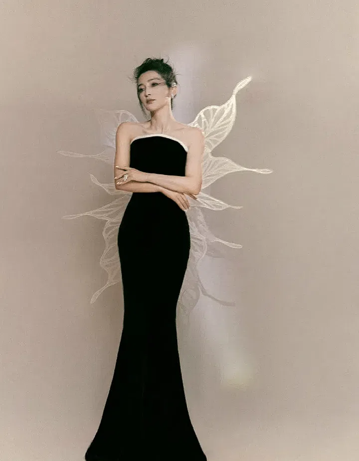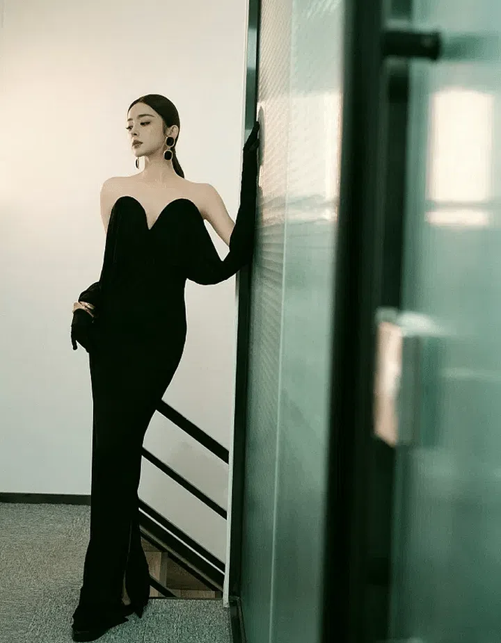 In recent years, Zhou Dongyu's red carpet style has been increasingly attention-grabbing. This dress, from the Cong Tri 2024 Spring/Summer collection, features a single-shoulder design and a body-hugging silhouette emphasizing her waist and hips.