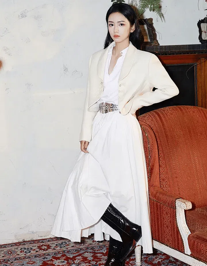 Zhou Yi, a Dior brand ambassador, looked effortlessly stylish in a Dior oversized jacket and white long skirt. The chic butterfly belt added a unique touch to her overall look.