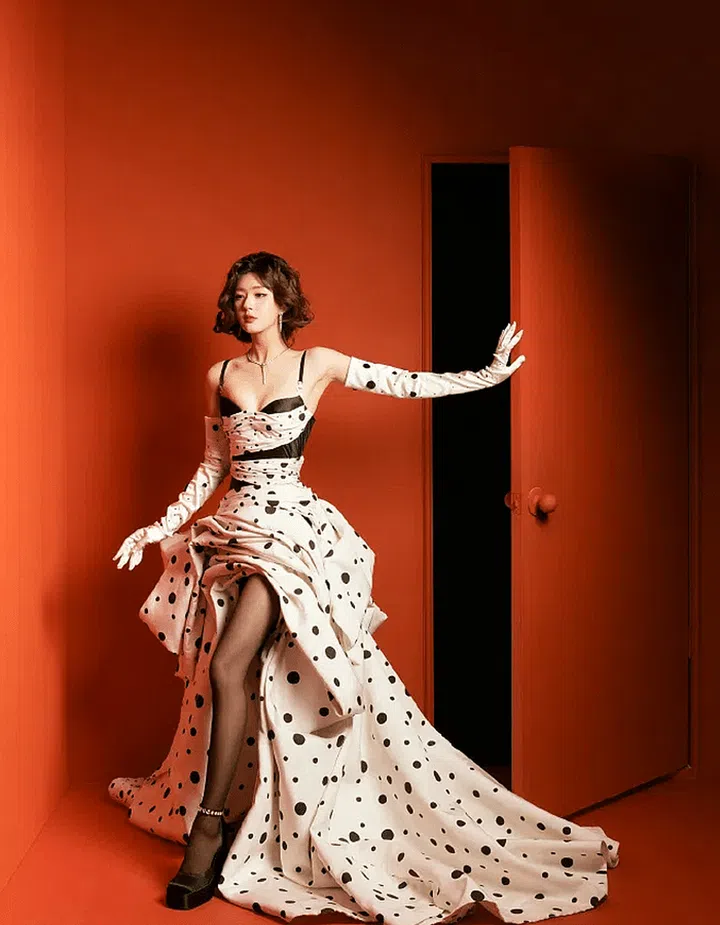 As the newly appointed global brand ambassador for Versace, Zhao Lusi turned heads in a playful, polka-dot evening gown from the brand's 2023 Spring/Summer collection. The phrase "Who said I'm a Dalmatian" was also trending on Weibo because of her look.