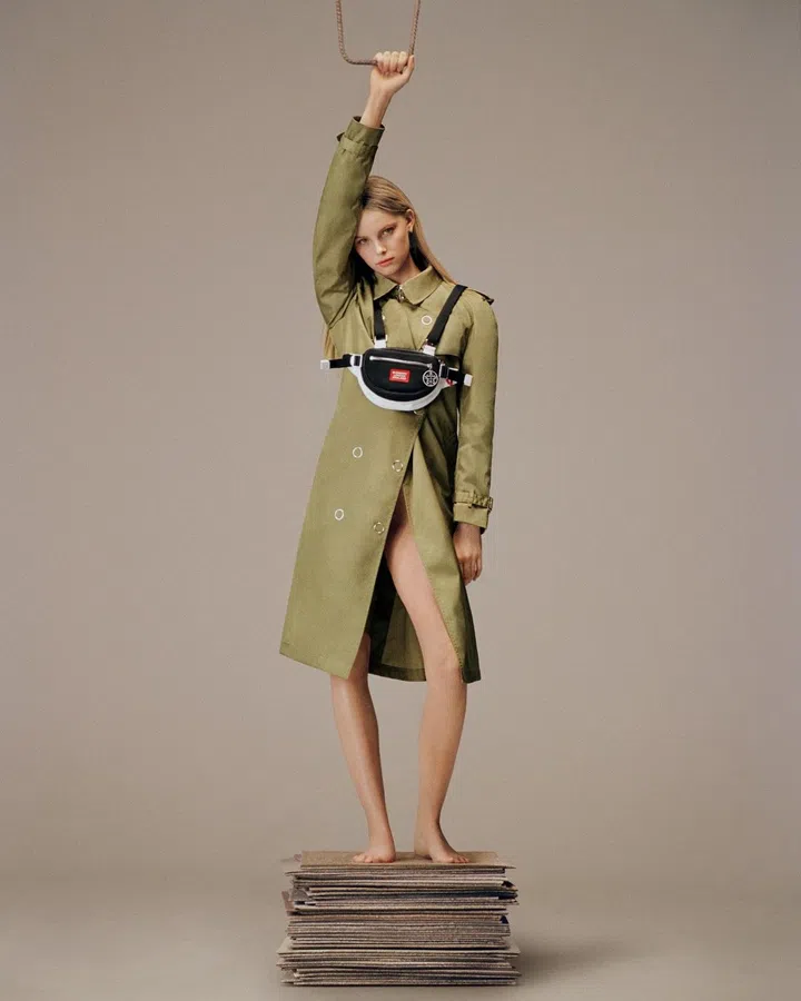 If you come across a pistachio label when shopping Burberry, it means you’re looking at the ‘ReBurberry Edit’ - a curated edit of 26 styles from the SS'20 collection crafted from the latest sustainable materials used across the Burberry product range. The label informs the customer how a product meets a range of criteria which the brand refers to as ‘positive attributes’. It includes things like the amount of organic content or recycled natural fibres used in materials and the standards at production facilities.