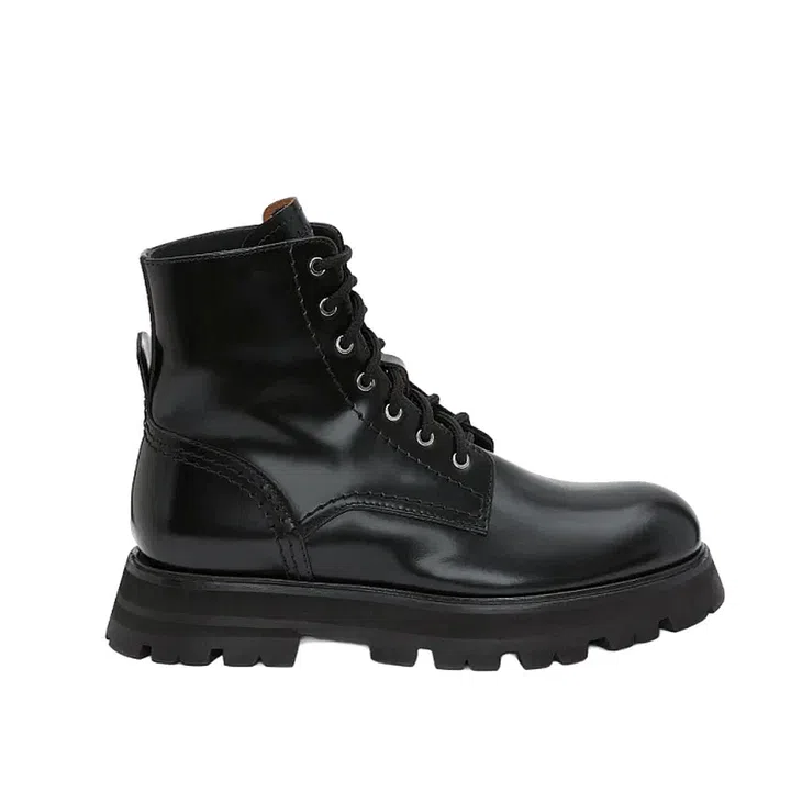 At Valentino, creative director Pierpaolo Piccioli opts for glossy combat boots with Rockstud accents, while showing off plenty of legs with tailored shorts, mini skirts, short dresses and rompers. The more glamorous versions of these boots even come adorned with plumage peeking out of the top for dramatic effect. At Dior, creative director Maria Grazia Chiuri turns up the swashbuckling effect of these boots. Her iteration goes up almost to the knees, with four straps on the back. Want to know what other combat boot options there are out there for the new season? Keep scrolling on.
