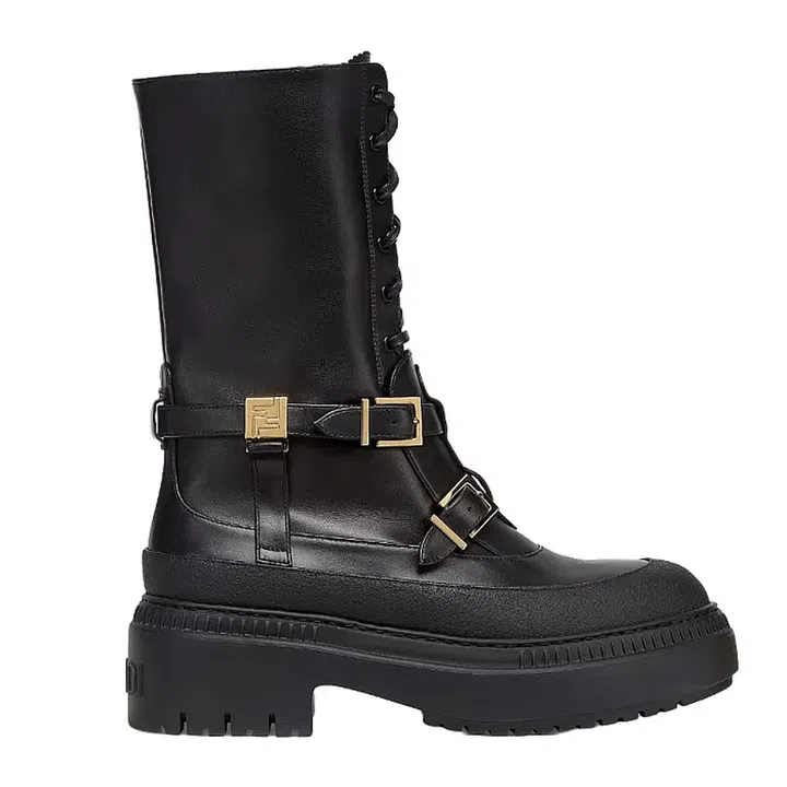 Combat boots with a touch of glamour at Valentino for Fall/Winter 2023.. Credit: Valentino