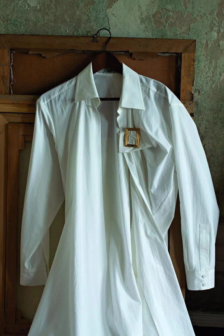 The puffy round shoulder, a key look in his current collection, went through dozens of prototypes so he could create “the perfect shoulder construction”. Image Credit: Kiminte Kimhekim