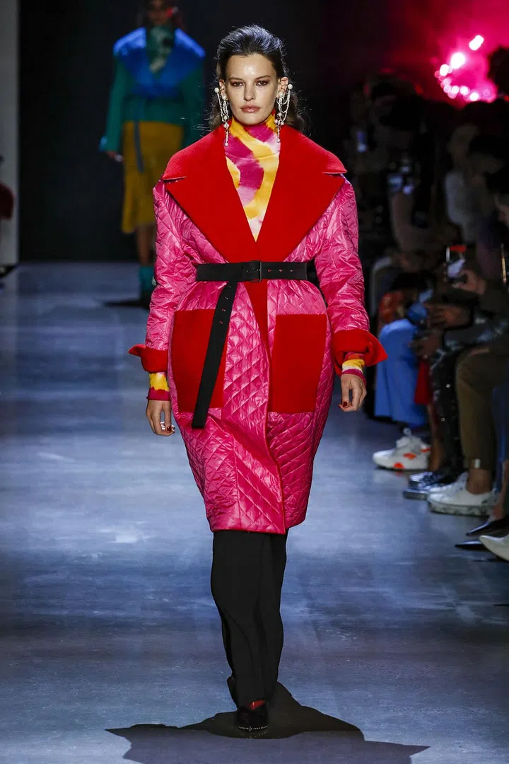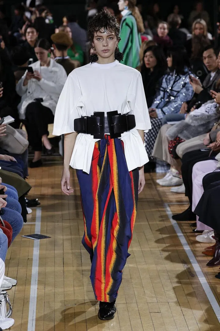 Time to show some school spirit. Designers from Richard Malone to Toga (pictured here) and Ashish painted a series of bold stripes in contrasting primary colours onto faux fur coats, baggy trousers and oversized jumpers respectively. Its tongue-in-cheek irreverence sets a different tone for fall/winter – one that is cheerful and bright.