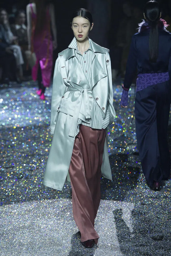 But for the 2019 way of doing satin, turn away from negligee and instead shift your focus to soft tailored suiting (which we talked about extensively here) and lightweight coats ala Tom Ford (pictured here) and Sies Marjan to mirror today’s contemporary woman.