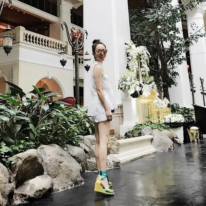 If you’re rocking something simple such as a white t-shirt and a pair of denim shorts, always complete your ensemble with a statement accessory. Fann chose to match her white peplum sleeveless blouse and shorts ensemble to these yellow espadrille wedges that feature emerald green satin lace details. Don’t own a pair of fancy heels? You can finish your look with bold jewellery or a statement eyewear.
