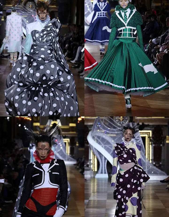 Inspired by a Parisian opera production of Cinderella, the always-theatrical Thom Browne gives his delightfully warped take on the fairy tale with wildly billowing ball gowns and prom dresses inspired by ’50s rock ‘n’ roll (gotta have that jolt of Americana with him). To complete the look on the runway: New Wave makeup and massive mohawks.