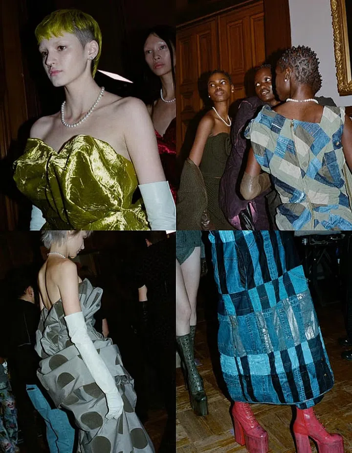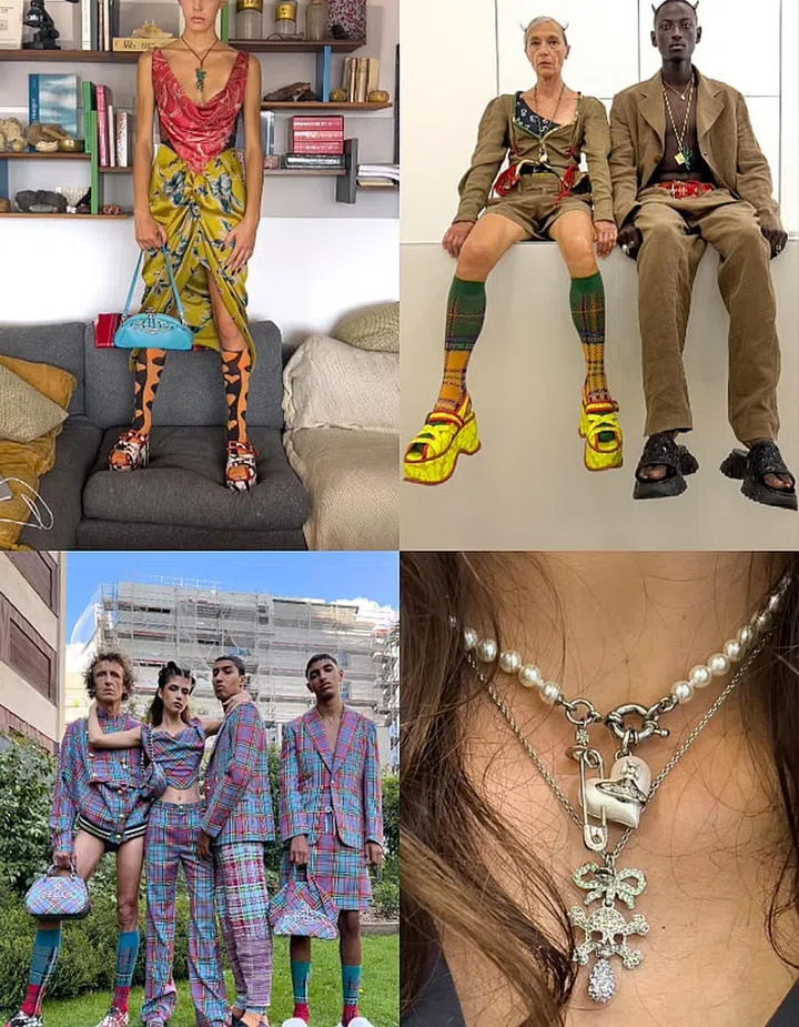 Meanwhile, accessories have been distilled down to the essentials. On the runway, models wore a single strand of pearls – a look that Jacobs himself favours, but can also be seen as a nod to the very necklace that shot Westwood into Gen Z consciousness. The footwear of choice: Jacobs’ staple Kiki platform boots inspired by the vertiginous shoes Naomi Campbell famously took a tumble in when walking Westwood’s Fall Winter 1993 show.