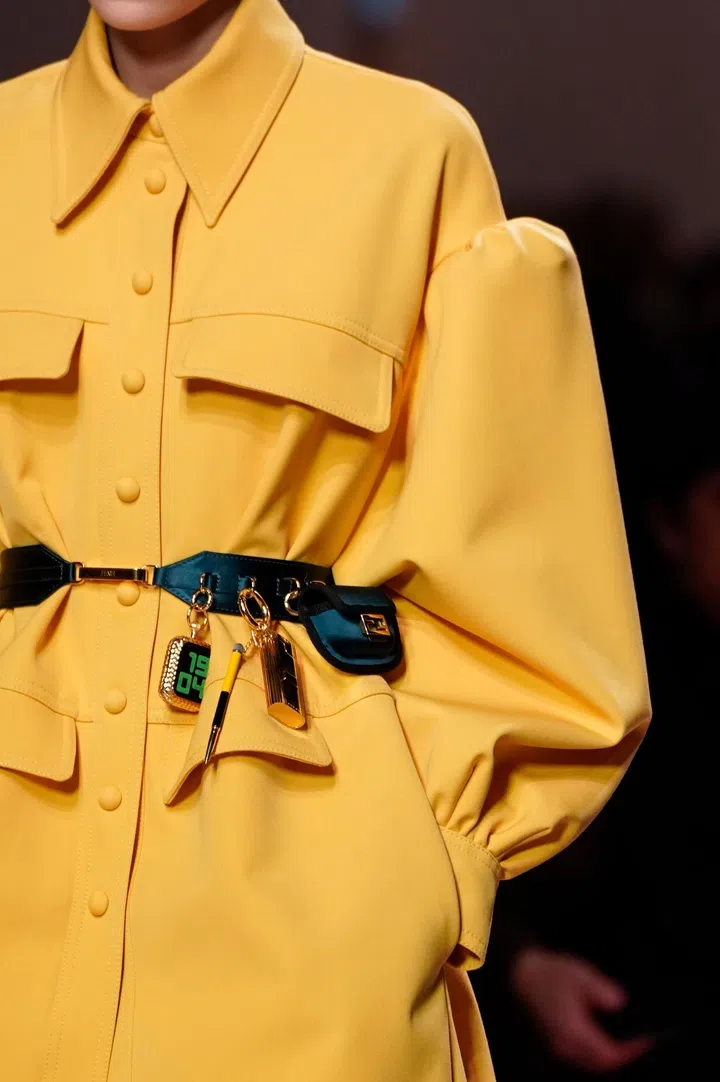 Micro bags are getting delightfully smaller and smaller – how do you ensure you don’t misplace one? Fall ‘20’s designers have a solution: turn them into keychains. Seen hanging off of bigger carryalls, secured onto belts, wristbands and necklaces, micro bags that can barely hold more than a single Tic Tac now serve as adorable little charms.