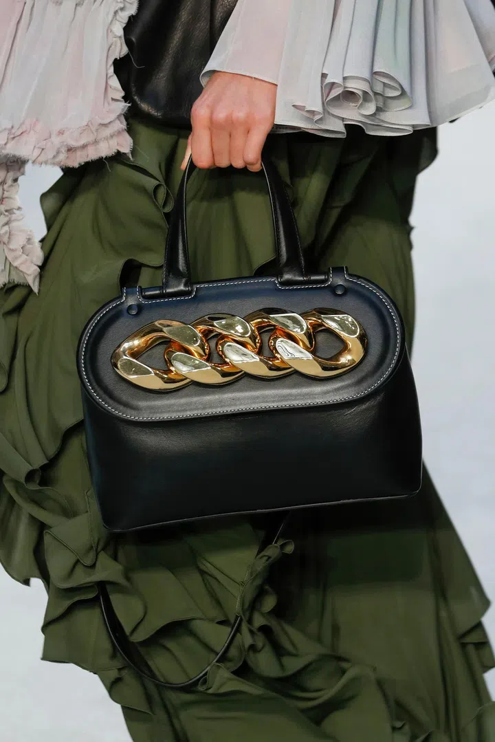 Oversized chain links were seen at JW Anderson as the main decorative hardware adorning the supple leather bags.