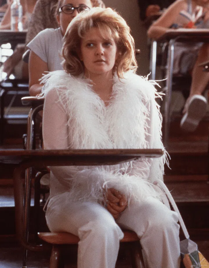 Recreate Drew Barrymore's character Josie Geller quintessential ’90s outfits made up cute candy floss-coloured dresses, pretty floral cardigans and feather-trimmed tops