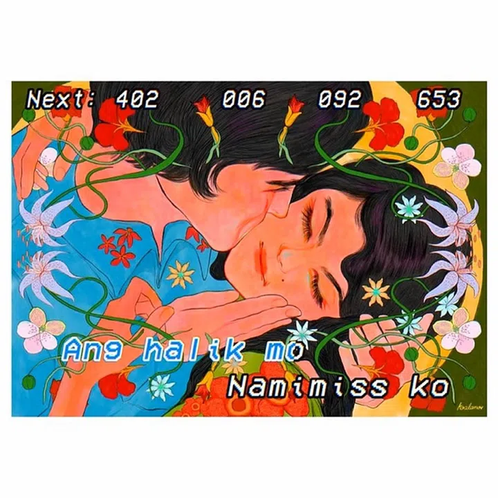 Produced by Filipino artist and illustrator Koalanov, this digital print envisions Gustav Klimt’s iconic masterpiece, The Kiss, through the vibrant lens of Filipino pop culture. Freeze that visual spectacle in a Videoke lyric video frame, featuring the legendary love duo Nora Aunor and Tirso Cruz III from ’70s Philippine cinema. Now, add a sprinkle of lyrics from the famous Filipino rock band Aegis’ anthem, ‘Halik’ (which means kiss in Tagalog). The result? Practically a Pisces portrait in pixels.