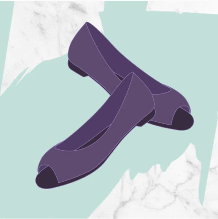 Definition: These shoes feature a tongue that covers half the instep and extends to the toe cap. They can be completely flat or have a low heel, and has no lacing or fastening system.