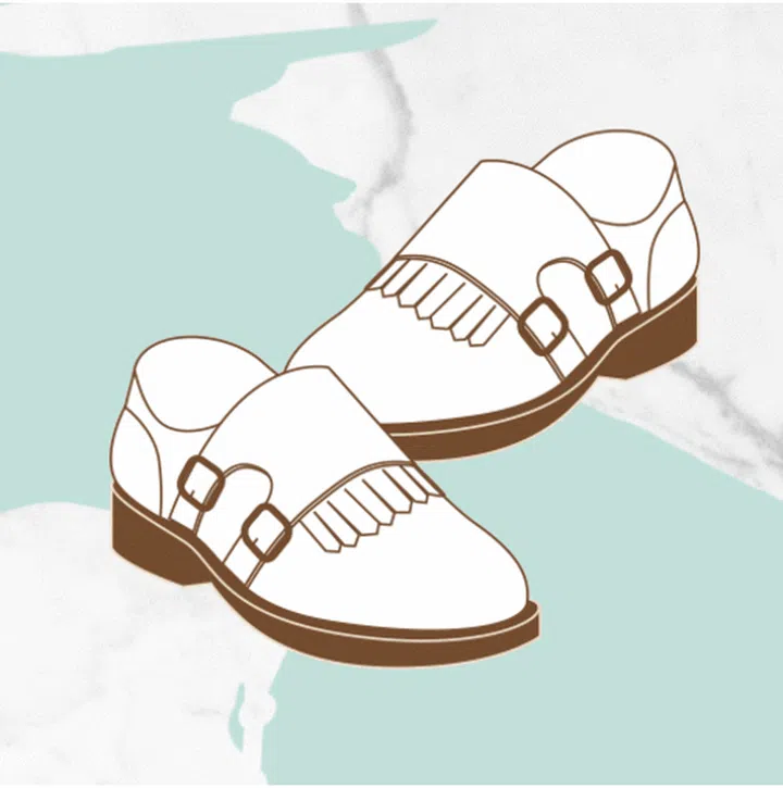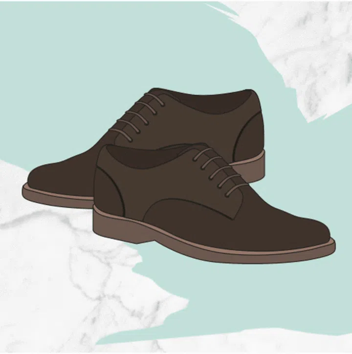 Definition: Low-heeled lace-up shoes that are traditionally characterized by multiple pieces of leather uppers sewn together. They typically feature decorative perforations around the edges of each leather piece, and usually have a rounded toe.