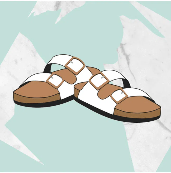 Definition: Shoes featuring a suede or leather upper with an open toe and 2-3 buckle-adjustable straps – think Birkenstocks.