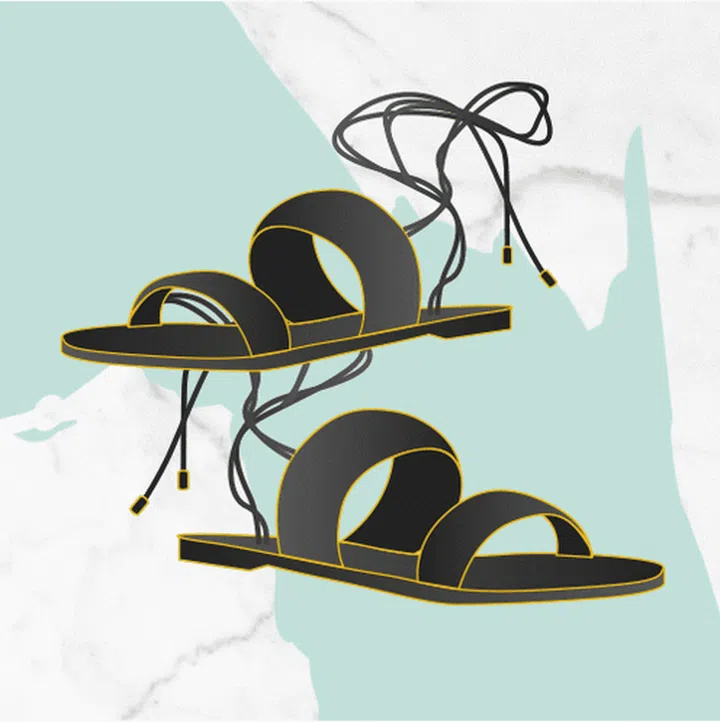 Definition: Think of it as a crossover between ballerina flats and gladiator sandals. Lace up sandals can be either open or closed-toe, and fasten to your feet by lacing up a length of string around your ankles.