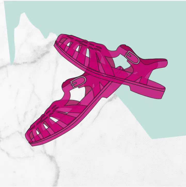 Style tip: This super casual style is best left for summer vacations at the beach. Pair with swimsuits or casual summer dresses. The nature of the material can cause your feet to er, not smell as good as they should, so consider spritzing deodorant if you’re wearing them for prolonged periods.