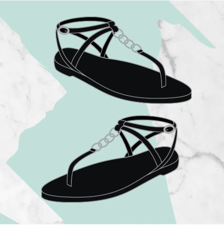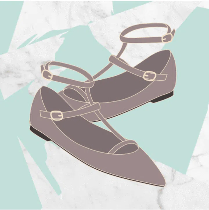 Definition: Flats with a ‘T’ shaped strap that crosses the tops of your feet, wrapping around the ankle.