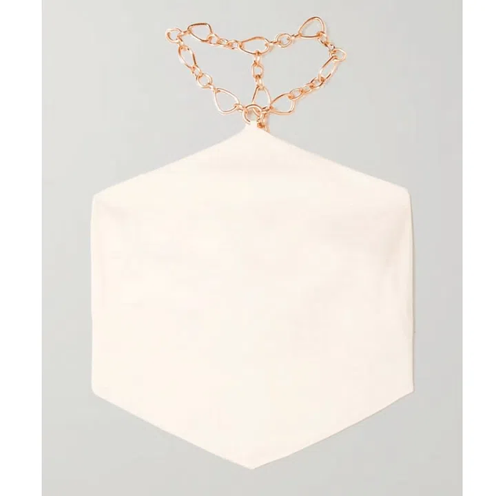 Looking for a statement-making top? Try out this halter neck by Cult Gaia that’s designed with a gold-tone chain-detailed halterneck and a handkerchief hem. Perfect with jeans or a denim mini skirt.