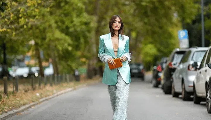 Heart certainly knows how to make a statement. She stepped out in a bright blue feathery number by Collini Milano under a matching satin blazer.