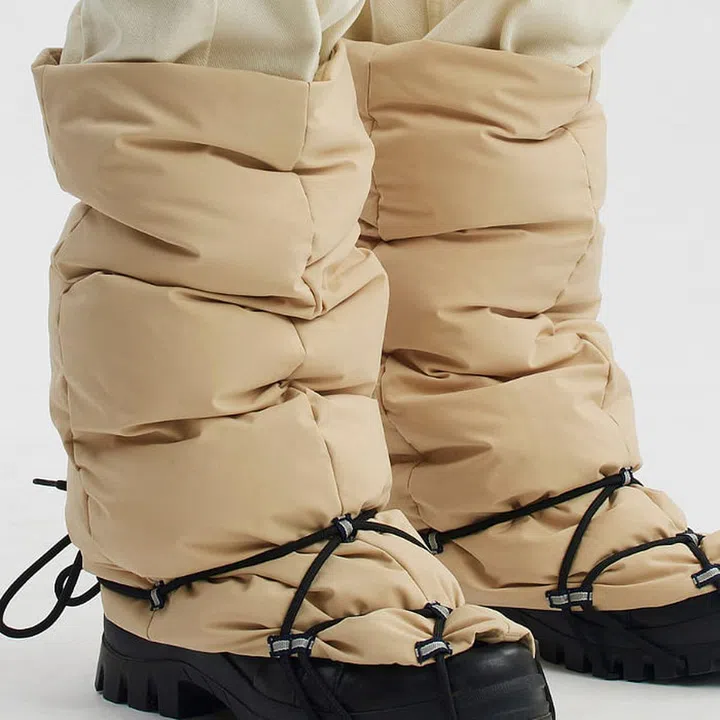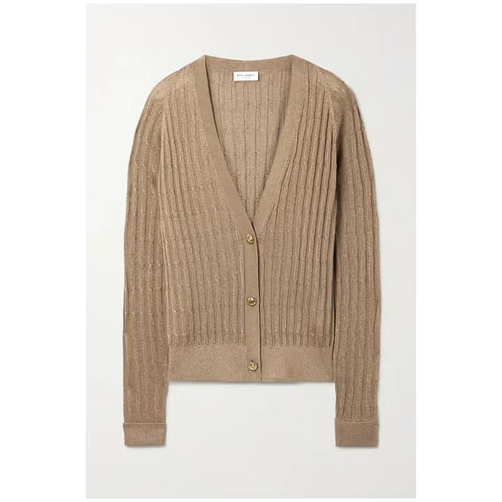 Perhaps the subtle approach is more up your alley. Channel the ’80s with a pair of puffy leg warmers by Norwegian fashion house Holzweiler, which can be attached to any shoe. Stick to the neutral colour palette from head to toe, but if you’re in the mood for a little sparkle, a metallic cable-knit Saint Laurent cardigan will do the trick.
