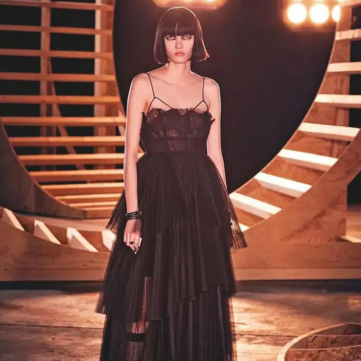 For a twist to girly, do like Dior and team a tiered maxi in romantic tulle with leather add-ons for punk edge undertones.