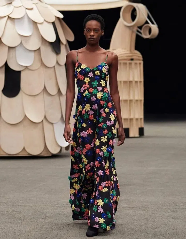 The Cannes Film Festival has kicked off and one outfit that has caught the attention of red carpet watchers is a sleeveless catsuit that American actress/director Brie Larson, who is one of this year’s jury members, wore to the photo call on May 16. Irreverent, playful and definitely unpredictable by Cannes’ sartorial standards, the look features an all-over red, pink and white hand-painted floral motif that one can easily mistake for tiny sequins. The origin of the look? Chanel Spring/Summer 2023 Haute Couture collection.
