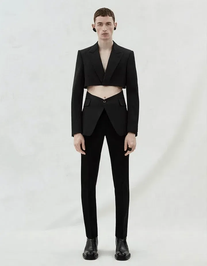At Dolce&Gabbana, that bastion of virile Italian masculinity, Domenico Dolce and Stefano Gabbana looked to their own repertoire of ultra-precision suiting from the ’80s and ’90s, and adapted it for a 2020s context. The duo took their signatures and cinched, sculpted and whittled them into volumes that evoked their sensuous womenswear. As a result, the clothes were the freshest and most fashion-forward they have looked in years. Sarah Burton of Alexander McQueen was inspired by McQueen’s time on Savile Row. Hence, her starting point of razor-sharp tailoring, to which she applied the dissection and subversion that are the House’s core qualities. Some of the suits were fashioned into bustier-like forms; others were sliced open like the cut-out dresses she showed in her women’s collection.