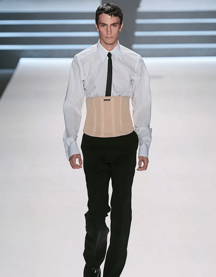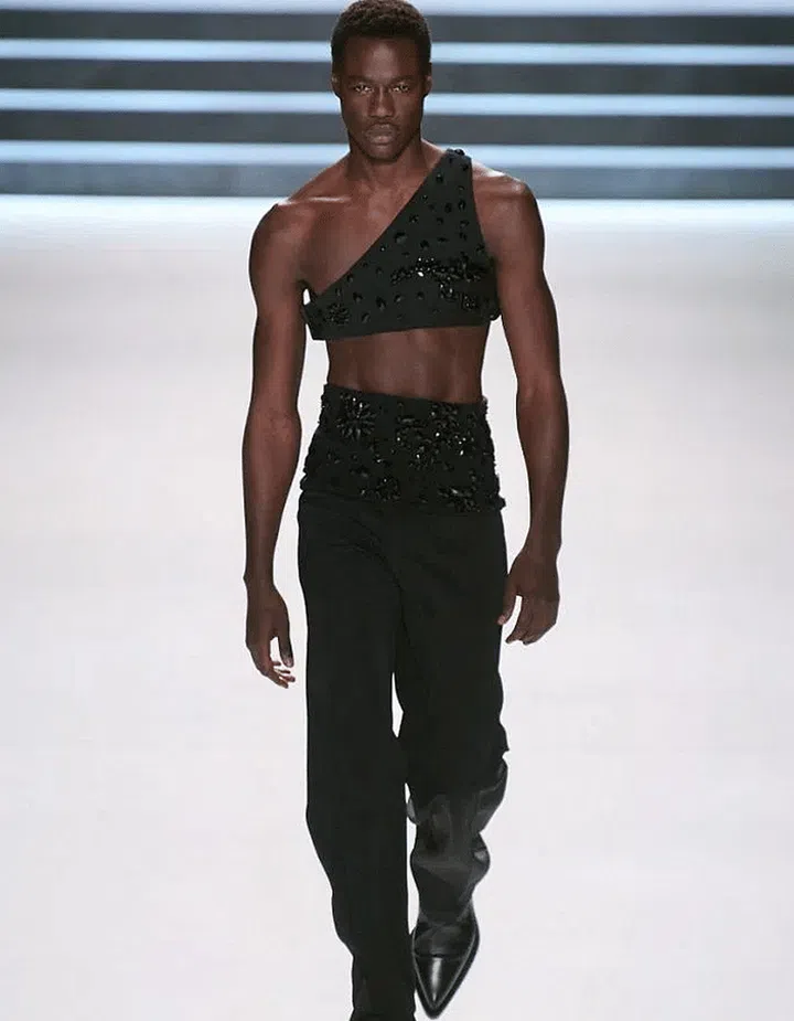 Vaccarello isn’t the only designer who has sensed this shift in the air. The interesting thing is that it’s the world’s biggest brands and most established designers who are keying into this new, more feminine mood for menswear. It’s almost a given that young, indie, and/or queer designers — your Ludovic de Saint Sernin’s and Palomo Spain’s — will push the boundaries of gender and identity in fashion; but big brands, by the very nature of their businesses, which need to appeal to the widest possible audiences, have a tendency to not rock the boat so much. This season, in menswear at least, that has been upended.