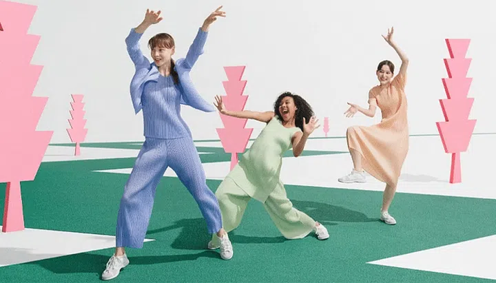 For further inspiration, check out the dynamic campaign video, where models jump and frolic in Pleats Please garments, with each leap representing a musical note. Together in motion, they embody a lively symphony exactly what an Issey Miyake creation represents.