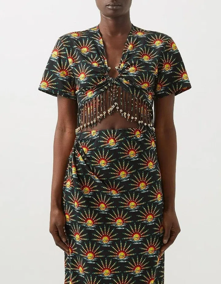 the runway, including the gorgeous colourful fringed maxi dresses, was paired with summer slides. Proenza Schouler’s vibrant cut-out maxi dresses were adorned with cascading fringing, but there is a simplicity and versatility to the silhouette that makes it perfect for a Sunday brunch, as well as a