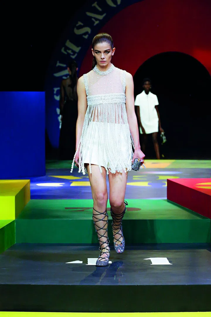 night out at a posh restaurant. Even when the fringe was embellished with tiny daisies on an intricately embroidered blouse at Dior, it was styled with a pair of tailored white shorts. This further illustrates the spirit of the season, which is to wear the prettiest clothes anywhere and everywhere, and not just on fancy occasions.
