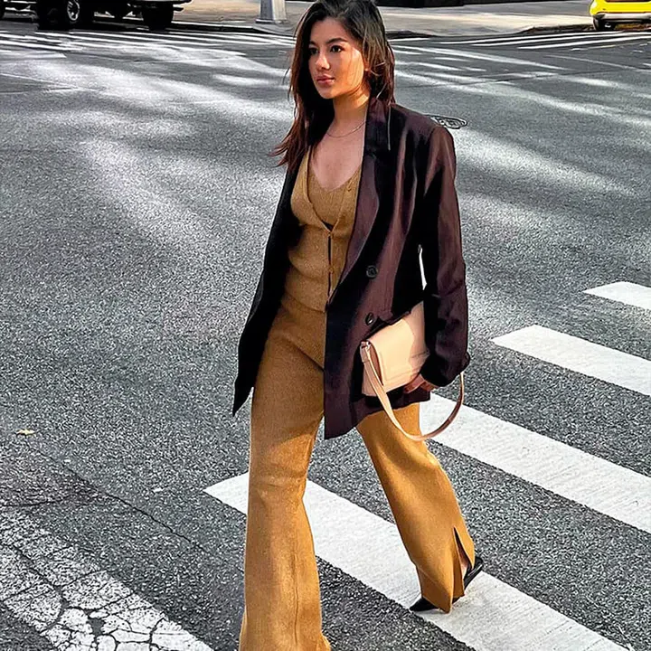 Clara describes her personal style as classic and elegant, with a love for neutrals. She’s often seen in slouchy silhouettes such as an oversized shirt or a matching baggy blazer-pants set.