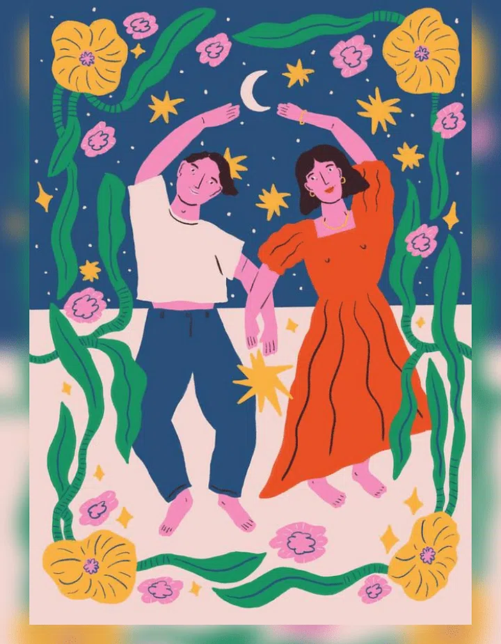 “She often blends the female body into landscapes, making us think about our relationship with nature. I love watching her spontaneous dances while she’s painting.”
