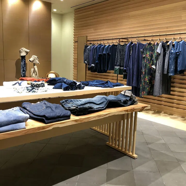 The store gates, fitting room doors, and certain display tables are made of a very special wood, named Yakusugi. How special is Yakusugi? It is obtained from 1,000-year-old (no typos here) Japanese cedar trees that grow at high altitudes in the forests of Yakushima island. But don’t worry, no trees were intentionally felled to make the fixtures. As it is not permitted to cut Yakusugi now, wood from trees that fell naturally in typhoons were used instead.