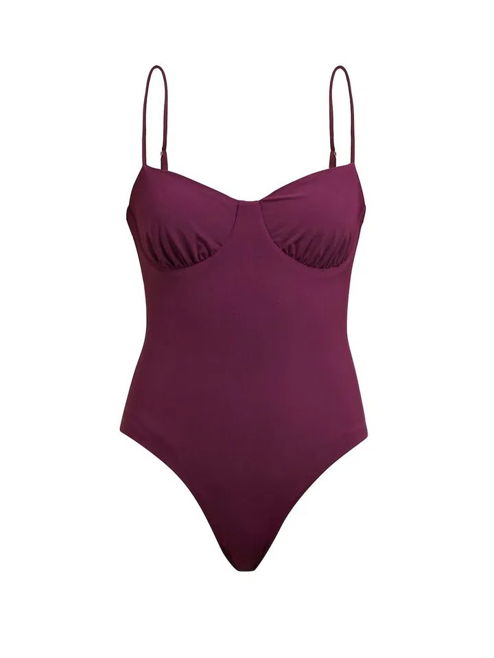 Whether you’re wearing this one-piece by the pool/beach or as a bodysuit paired with a pair of wide-legged jeans, one thing’s for sure: You’re bound to turn heads with this rich aubergine swimsuit, thanks to that sultry dip in the front.