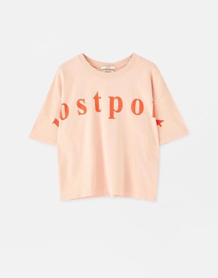 Pull & Bear orange T-shirt with slogan, S$29.90