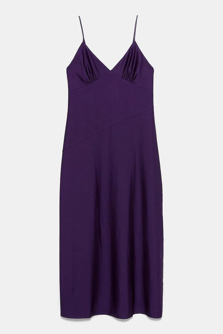 We’re loving the deep purple hue of this Zara piece as it adds sophistication and elegance to a typical shoulder-baring slip dress (which if not careful, can veer into the trashy arena). Pair it with a pair of strappy sandals and a high ponytail for a night out.