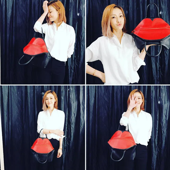 Florals for fall? Yes, it’s totally legit. Taiwanese singer Selina carries a brightly-lit bag that instantly lifts mood with its pretty and bold blossoms.