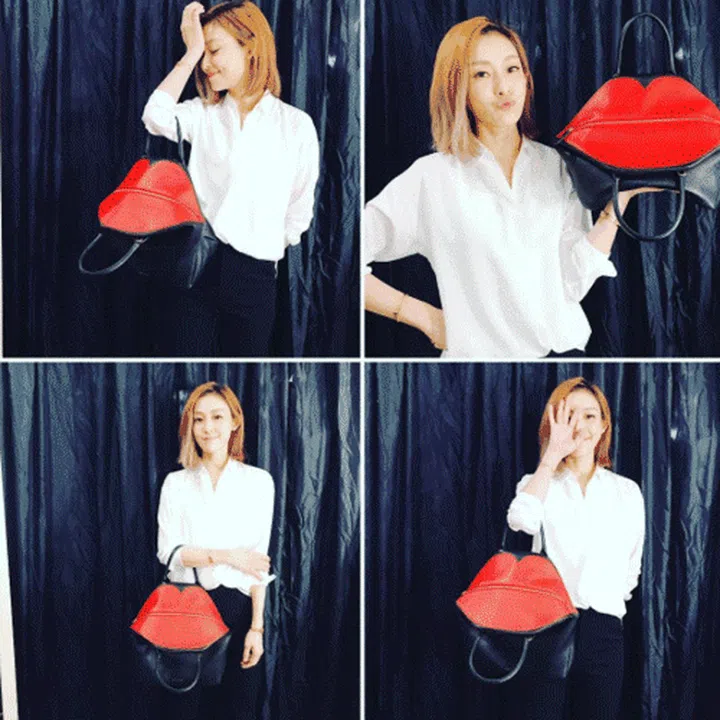It features a peekaboo opening at the top; expand it to reveal its zip that’s hidden as a bright red lip.