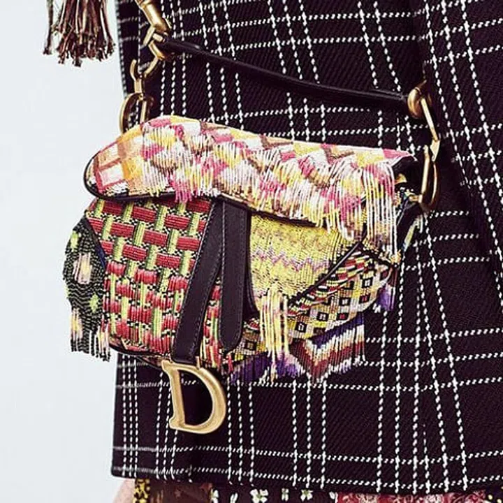 Featured in a number of different styles including in the signature Dior logo print, beaded styles and patchwork prints, this season's Saddle bags featured the iconic gold ‘D’ charm hanging off them. Vintage, with a twist — the new-and-improved Saddle bags are infinitely collectible and covetable.