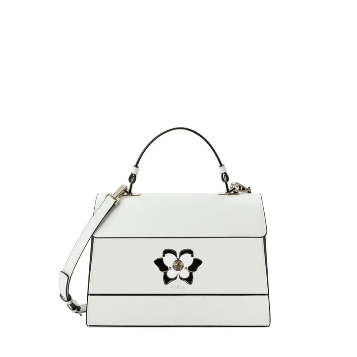 The new Furla Mughetto, introduced for the Pre-Fall 2018 season, embodies the classic and innovative style principles that are Furla’s signature. Featuring a fun colour block patchwork design; white and black, or light blue, white and ochre, this new bag features contemporary and clean lines. It’s also functional and practical too; its body is gusted, making for a more spacious interior. What truly defines its look is the closure: a butterfly-inspired flower in enamelled metal, rhinestone and resin.