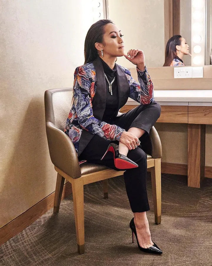 Stage and television actress Oon Shu An knows how powerful and stylish in a pant suit ensemble look.