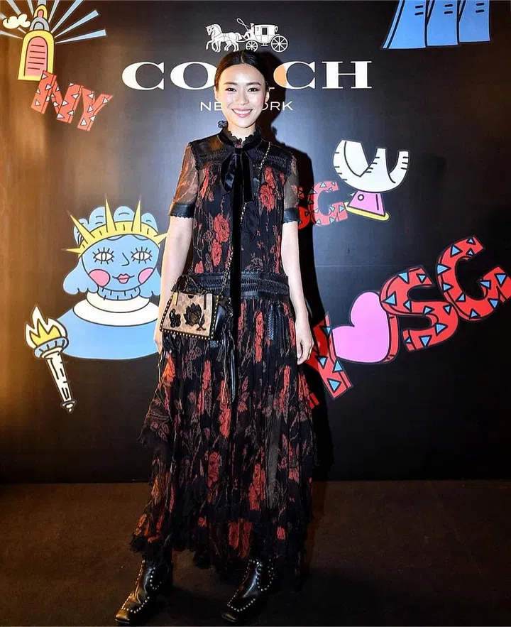 At the re-opening of the Coach Marina Bay Sands store, local actress Rebecca Lim got decked out in a frock from the American luxury label.