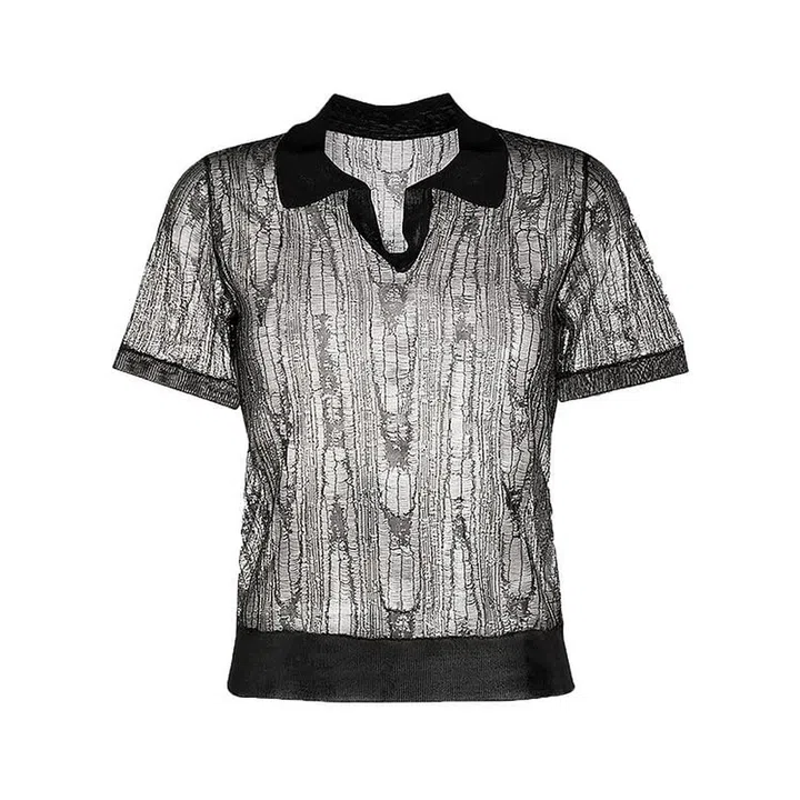 With its artistic patterns and see-through design, this is definitely not your basic polo top.