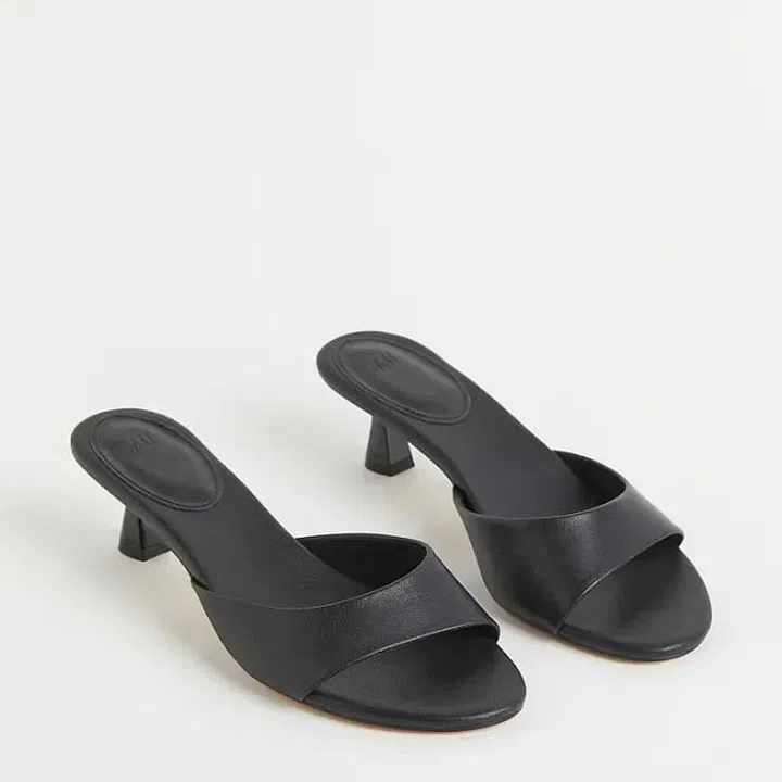 Need to dash into a last-minute meeting? Leave these open-toe mules underneath your desk for that five-second spruce up.