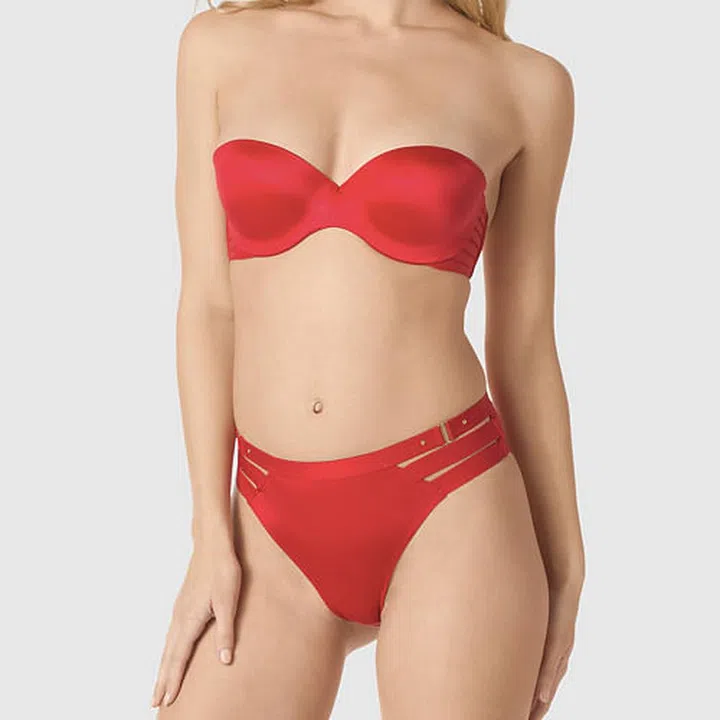 Strapless lightly lined strapless bra and invisible brazilian panty, S$71.66 and 15.70 from La Senza